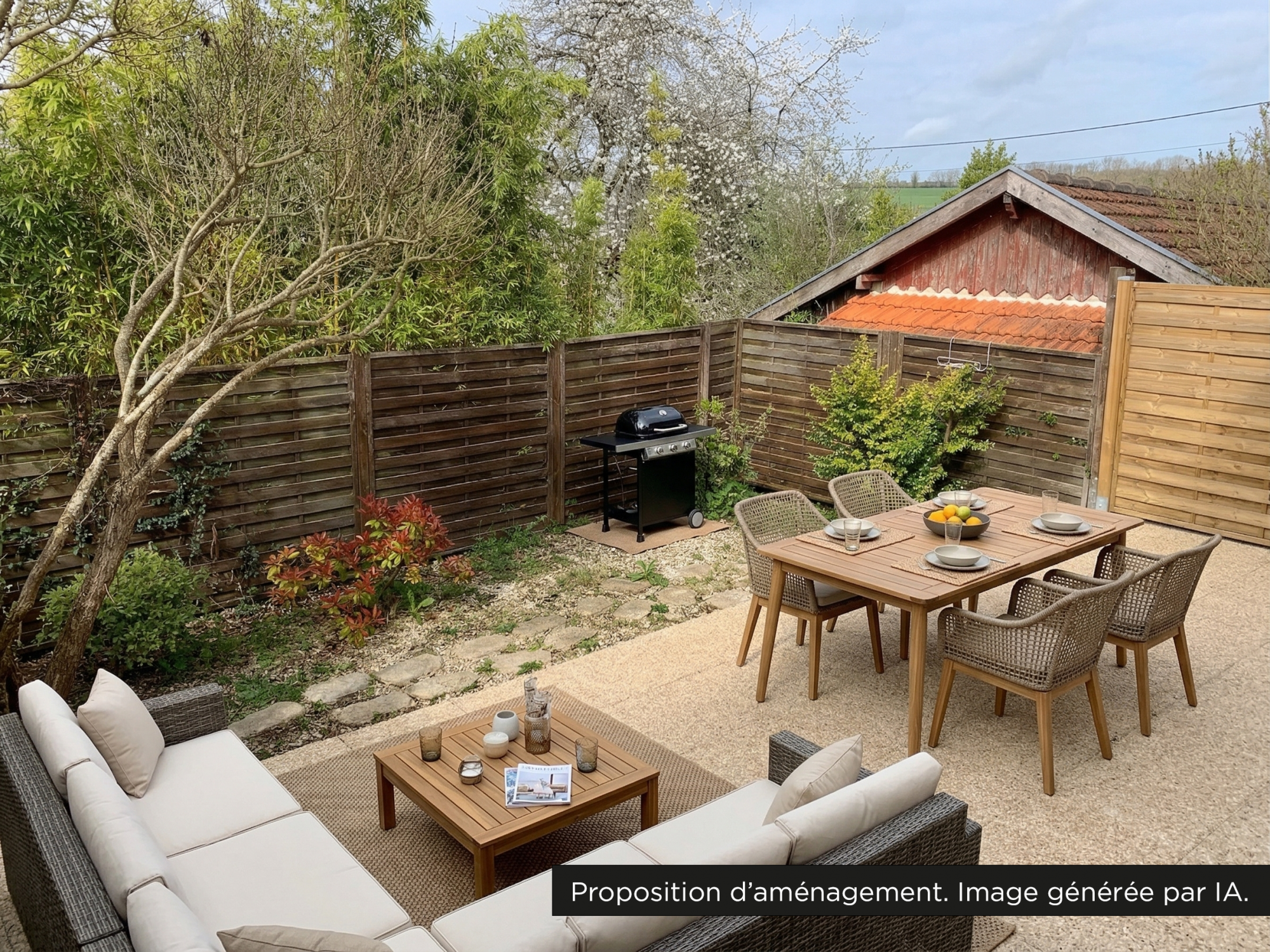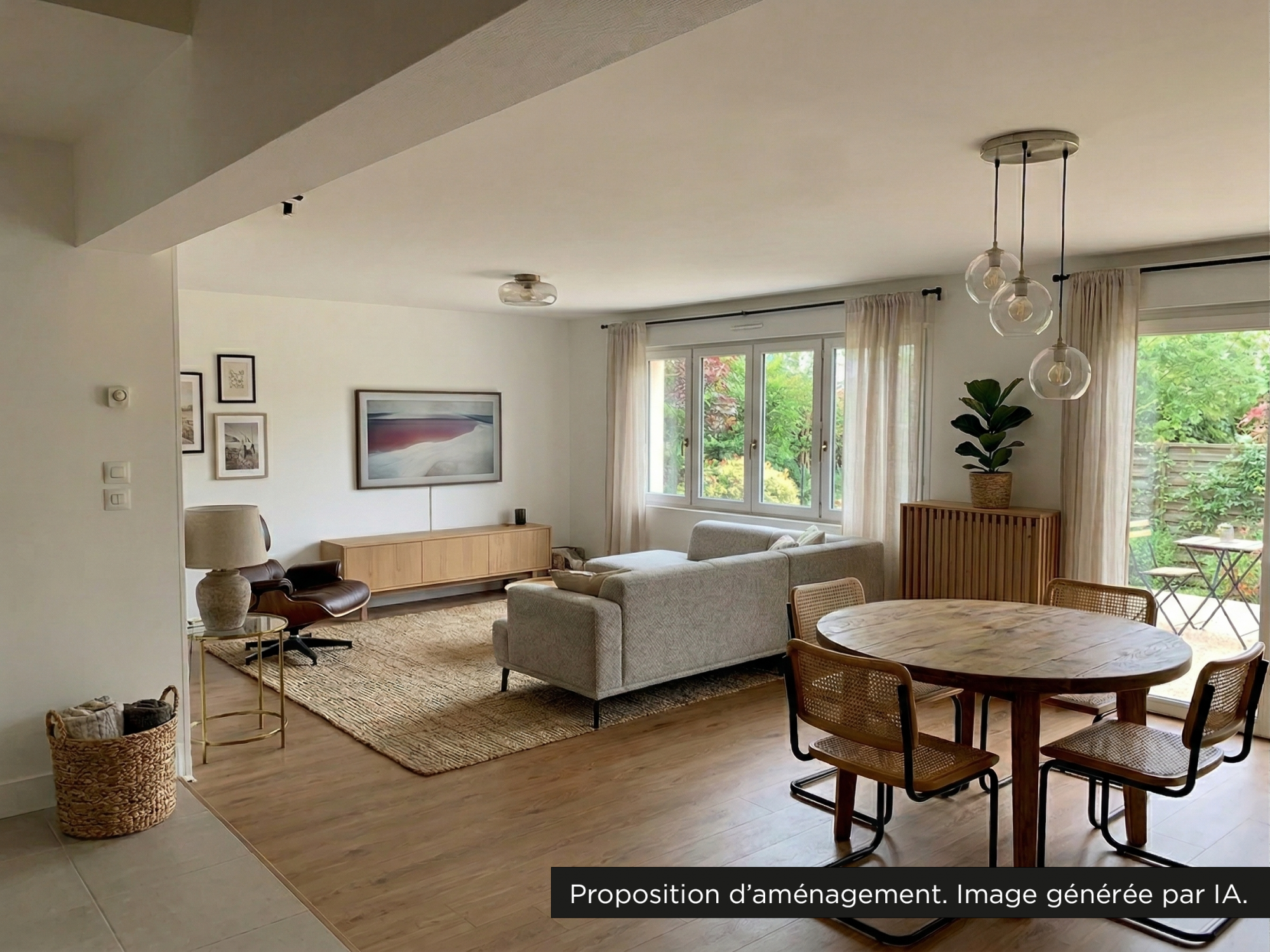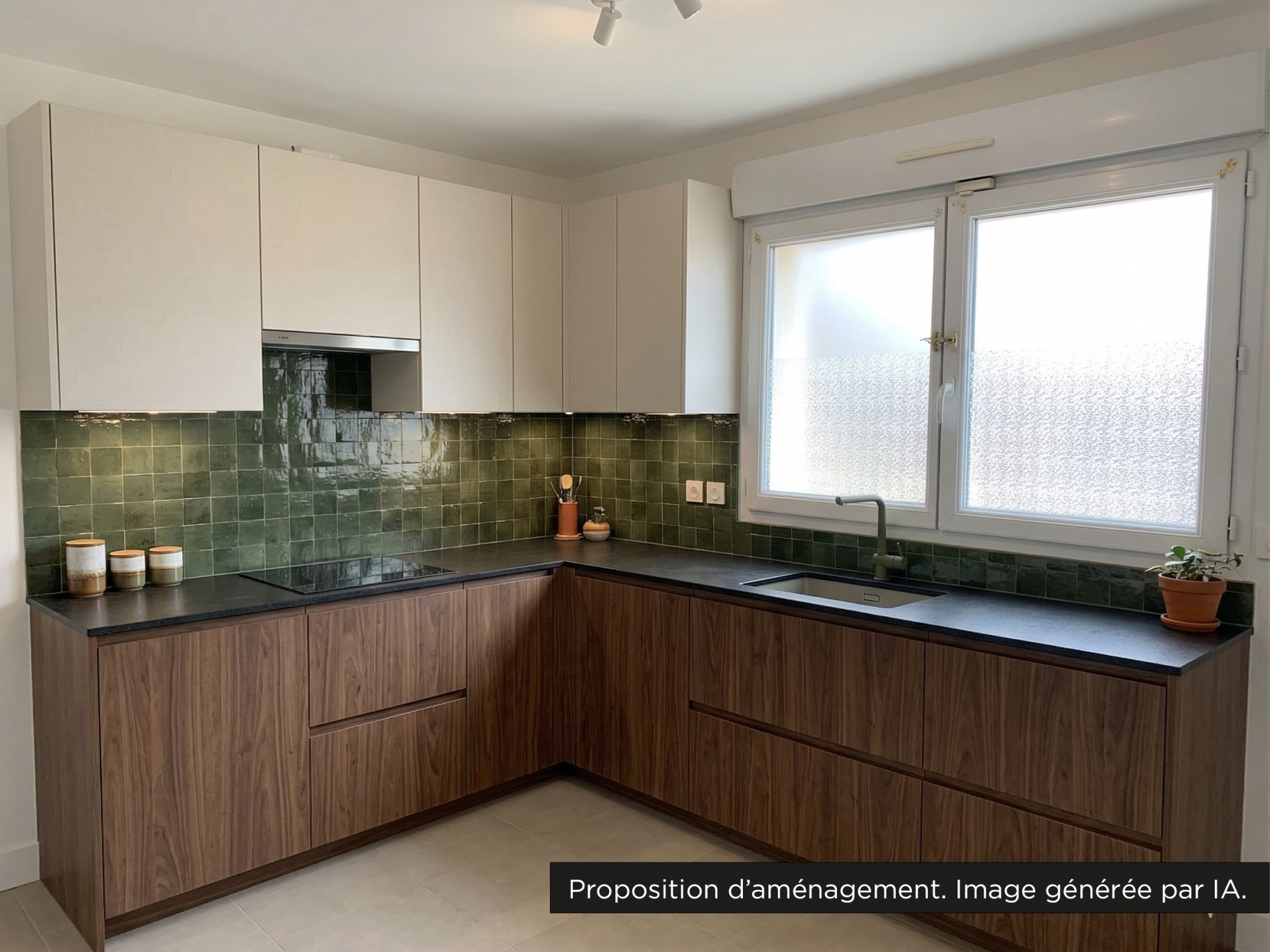 LA CAMPAGNE A LA VILLE pour cette maison au design contemporain, édifiée sur un terrain de 217 m² et faisant plus de 110 m² habitables. Elle saura vous séduire par ses volumes généreux et est composée au RDC d’une entrée, cuisine, séjour orienté ouest donnant sur une belle terrasse prolongée par un jardinet, garage… A l’étage, 3 belles chambres, salle de bains… DPE: C (moyenne des consommations selon prix moyens des énergies indexés sur 2021 compris entre 1 010 et 1 400 €). Elle vient de faire l’objet d’un relooking complet (sols: carrelages et parquets neufs, peinture murs et plafonds... neuves) et est donc en très bon état. Concernant la cuisine, nous avons fait le choix de supprimer l'intégralité de l'ancien mobilier et de la laisser vide afin de vous permettre de réaliser votre cuisine. Nous vous avons néanmoins grâce à l'IA fourni une proposition d'aménagement. EXCLUSIVITE IMMO PLUS
